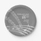 Modern, stylish silver grey 25th SILVER WEDDING ANNIVERSARY Paper Plates, including musical staves and 25 in LIGHT GRAY. The main text reads MAKING SWEET MUSIC FOR 25 YEARS. There is CUSTOMIZABLE TEXT, which you can PERSONALIZE by adding the anniversary year, the names of the special couple and the current year. Other milestone years and colours are available from BEREAN DESIGNS.