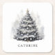 Modern Custom Name Black & White Christmas Tree Square Paper Coaster