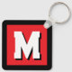 Modern custom name initial monogram metal keychain. Personalise with custom text. Red black and white colours can be customised. Square shape. Bulk gift ideas.