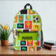 Modern Custom Name Soccer Football Pattern Black Printed Backpack.