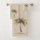 Modern Custom Palm Tree & Script on Beige Bath Towel Set