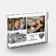 Modern Simple Elegant Trendy Custom Photo Collage Fathers Day Daddy Acrylic Photo Block. He's an awesome dad! Personalised one-of-a-kind unique create your own custom 3 photo collage keepsake photo block, featuring a small heart detail in a fingerprint design. Easily add your own text and personal pictures. This memorable customised keepsake captures the love between father and child or children. Modern handlettering typography notes "Happy Father's Day Daddy Love you" and child's or children's names. Option to change the name from Daddy to Dad whatever name you choose, or uncle or grandpa or granddad. Your photos can be colour or black and white. Text colour can be changed, too. Perfect gift idea for Father's Day or just because. Personalised thoughtful gifts for dad from son or daughter for the father who wants nothing. Elegant addition to his desk. He'll treasure it always! Step by Step Inspiration Series available exclusively on Zazzle at zazzle.com/store/KrisHarty, designed by international designer, Kris Harty. © 2020 Kris Harty Step By Step Inspiration