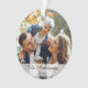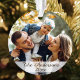 Personalize your holiday tree or home decor with a beautiful modern family themed acrylic ornament, featuring your family name and the year with your family photos on the front and back. This custom, unique design features an elegant calligraphy style font type in bronze color over a chic white gradient complimenting your families photo. The perfect housewarming addition to your holiday decor.