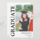 A modern classic script "graduate" in black and complements the photo of your grad. Personalise this simple card with photo, name, school and date for high school and message on back of card. Easy to customise. Congratulations!