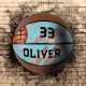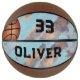 Modern Custom Player Name & Number Keepsake Basketball. Watercolor background texture in blue and grey colours. Personalise it with your player number and name. The design has a basketball drawing. A great personalised basketball keepsake to remember the favourite sport.