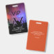Concerts and large events all access VIP pass badge template to customise featuring a background of crowd of concert goers and coloured lights with white text overlay. Customise for VIPs, staff, press or other uses, Add other event information to the reverse side of the badge in white lettering on black.