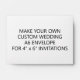 Make your own custom modern A6 envelope for 4"x6" wedding invitations. Click the button to edit the design to customise them completely by adding an address on the front, and a return address on the back, changing the fonts, colours, placement, or even adding a photo inside.