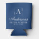 Modern Custom Wedding Couple Name Blue Can Cooler