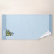 Cute little bird on light blue Towels. Text can be personalised, Text and image on just one side.