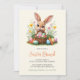 Invite friends and family to a delightful Easter Brunch with this adorable invitation featuring a cute bunny holding a basket filled with colourful Easter eggs, carrots, and spring flowers. Perfect for Easter celebrations, this beautifully designed card highlights a cheerful springtime aesthetic. Personalise it with your event details such as date, time, location, and RSVP information. Great for family gatherings, community brunches, or Easter parties.