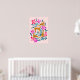 Modern abstract cute jungle animal with tropical flowers and palm leaves. Warm colours, pink background. It is great for kids room decor.