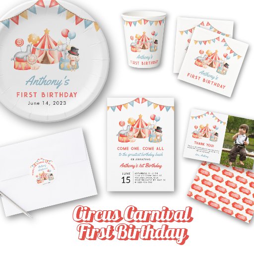 Modern Cute Circus Carnival Fiesta First Birthday T-Shirt for boy birthday party.