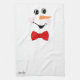Modern Cute Custom Smiling Snowman Face With a Red Bowtie Kitchen Towels