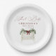 Modern Cute Elegant Santa Baby Baby Shower Paper Plates - Celebrate the joy of a new arrival with our Modern Cute Elegant Watercolor Santa Baby Shower Collection! This charming design features a cosy baby crib, softly detailed with festive Christmas greenery, and highlighted by a delicate, rich burgundy bow. The greenery cascades gracefully, adding a fresh, natural touch to the scene. The paper plate's sleek, modern typography flows beautifully, creating an air of refined sophistication, perfect for the season. It's a subtle blend of holiday cheer and timeless elegance, making it a truly memorable way to celebrate with your friends and family.