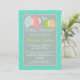 Unique modern safari theme with bright teal blue dotted pattern on the background, illustrated with two elephants, the mum and the baby. Main colours are: teal, blue, grey, pink and green. Ideal for baby boys baby shower. Some elements by BabaPuff. ***PLEASE NOTE that if you change the font or size of the font, it may alter how your invitation prints. It will print the way you see it on your monitor. I will not see your card once you order it, and Zazzle will NOT edit anything (typos, alignment, etc.). Shown here in Basic Paper