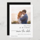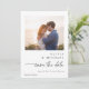 Share your big news with these minimalist wedding save the dates featuring your favorite photo and a cute and modern handwriting script. The simple black and white layout keeps the design elegant and trendy, while the handwritten typography adds a sweet, personal touch. A short message on the back offers space for your details, creating a stylish keepsake for family and friends. A perfect choice for couples who love clean, modern script and timeless save the dates.