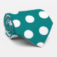 Modern and cute large teal blue and white polka dot pattern neck tie.