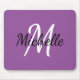 Modern Cute Monogram Initial + Name Purple & White Mouse Pad