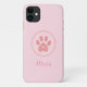 Modern Cute Pet Paw with Hearts on Pink Case-Mate iPhone Case