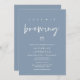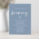 Announce your happily ever after in style with our modern dusty blue theme design (Love is brewing) bridal shower celebration invitation card. With its sophisticated yet playful design, embed with a little love heart and beer glass clinking graphic icon, this invitation is sure to set the tone for an unforgettable event. The invitation card features modern minimalist script design, adding a touch of timeless elegance to your celebration. Designed by TeeshaDerrick