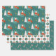 Our Modern Cute Santa on Christmas Eve Teal Wrapping Paper Sheets feature Santa Claus in his red suit making deliveries on Christmas Eve. The design includes Christmas decor including Christmas trees, candy canes, presents, ornaments in colourful holiday teal, red and gold holiday pattern.