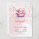 Modern cute teddy bear in bathtub girl baby shower invitation