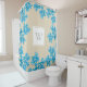 Modern Cyan Blue Flower Buds & Taupe | Monogram Shower Curtain