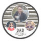 Modern Dad we love you Stripes 3 Photos Father`s Day Hockey Puck. 3 photos in oval frames - add 3 photos. You can change any text on the puck. This personalised hockey puck is a perfect gift for a dad for Father`s Day, birthday or Christmas.