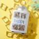 Personalised father's day can cooler featuring a 4 family photo collage of the children, the words "we love you daddy" in a trendy blue gradient font, and the kids names.