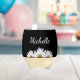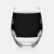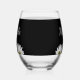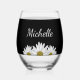 Modern rustic floral stemless wine glass, with a white daisies design on a black background. With white customisable script typography lettering you can add your own name. Great for adding a botanical style to your entertaining.