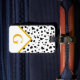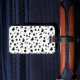 Modern dalmatian fur print luggage tag with personalised initial letter in gold.