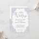 This invitation design showcases a refined white background accented with an intricate grey damask frame. The soft monochrome palette brings a timeless, understated elegance that feels both modern and classic. The grey ornamental detailing highlights the text beautifully, offering a sophisticated and graceful look, perfect for formal and stylish wedding celebrations.
