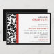 This modern invitation features black and white damask, a black border and a bold stripe of colour. Add your information using the template form. Choose the "Customise it further" feature to access the advance menu and change the font, layout and colours.