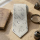Elevate a sophisticated wardrobe with this modern celestial necktie designed for those who appreciate a dark academia aesthetic. The visual features a striking geometric raven pattern paired with crescent moons and stars rendered in a muted grey and charcoal palette. It is a thoughtful choice for celebrating a special occasion or a unique gift for a stylish dad.