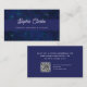These elegant and modern business cards feature a dark, colourful cobalt blue with a pretty pattern that will be sure to get noticed! Retro yet trendy script along with simple bold text contain all of your personal information, while a QR code makes the card scannable.