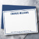 Modern, blank notecard with your name and custom text in bold fonts and a thick border. Dark blue text on a white background. You can change all colours, move and resize elements with the design tool.