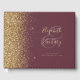 This elegant wedding guest book features a left-hand border of faux gold glitter on a dark burgundy background. Easily customise the gold-coloured text with the names of the bride and groom in whimsical handwriting calligraphy over a large ampersand. Add additional text of your choice to the front and spine.