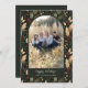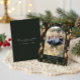 A modern holiday card your favourite photo in an arch shape with a pattern of holly leaves in green, dark red and cream. Personalise with your names, photo and reverse message.