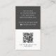 White and dark grey or custom colour, modern, professional business card design with template fields for name, company name/title, logo (photo or other graphic), QR code and contact information including social media icons. Change background colour, move and resize elements with the customisation tool.