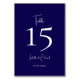This elegantly designed Table Number Card features a navy background and white text on one side, with white background and navy script on the other side, making it a truly modern design, perfect for your wedding style. Personalise the details, making it a memorable keepsake for guests, ensuring it stands out as a cherished memento.