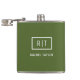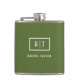 Modern Dark Olive Green Monogram Hip Flask