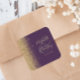 Modern Dark Purple Gold Glitter Edge Wedding Square Sticker