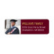 Modern custom address label design features a graduation photo of the graduate with yellow gold and white return address text and dark red / maroon background. Customise the text and background colours to coordinate with the photo or school colours!