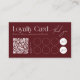 Dark red modern minimalist loyalty business cards designed to elevate your brand while rewarding your customers. This elegant template features a clean, simple layout with a rich dark red color that creates a professional and sophisticated look. Customize this design for your needs.