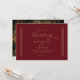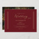 A simple minimalist dark red background with three simple lines on either side still manages to lend a dramatic backdrop to this modern "Wedding" occasion design. The text and lines are in a sandy antique gold. The back features your photo as the background. Script text can only be modified by designer. Simply add your names, wedding details and photo to complete. Composite design by Holiday Hearts Designs (rights reserved).