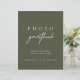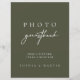 A minimalist wedding sign designed in dark sage green with elegant modern typography and a handwritten script accent. Ideal for photo guestbook table setups — instruct guests to snap a picture and leave a message for the couple. Fully editable and easy to personalise with names or wedding date. Pairs beautifully with modern, rustic, and outdoor wedding styles. View the collection link on this page to see all of the matching items in this beautiful design.