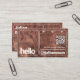 Introduce yourself with confidence using our Modern Dark Shade Wood Grain Bold Typography Hello Business Card. This business card features a simple, minimalistic design that emphasizes ease of reading and elegance, making it perfect for today’s professionals. The card's layout includes round corner boxes that neatly accommodate a scannable QR code, social media handles, and essential contact details. The rustic dark shade wood grain pattern create a sophisticated aesthetic that ensures your information is presented clearly and attractively.