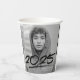Modern graduation paper cups featuring the graduate's photo with "2025" displayed in black, handwritten lettering with a dash below. Personalise the photo graduation paper cups by adding the graduate's name and school name. The design repeats on the back. The personalised graduation paper cups are perfect for both high school and college graduation parties!
