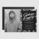 Trendy, modern graduation party magnetic invitations featuring the graduate's vertical senior photo and graduation party details with a background of black and white dashed brushstrokes.