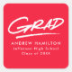 Personalised graduation stickers featuring "Grad" displayed in white handwritten lettering with a dashed underline. Just add the graduate's name, school name, and graduation year. The red stickers are perfect to use for sealing envelopes, graduation party favour bags, and more! Designed to coordinate with our Dashed Modern Grad graduation collection.